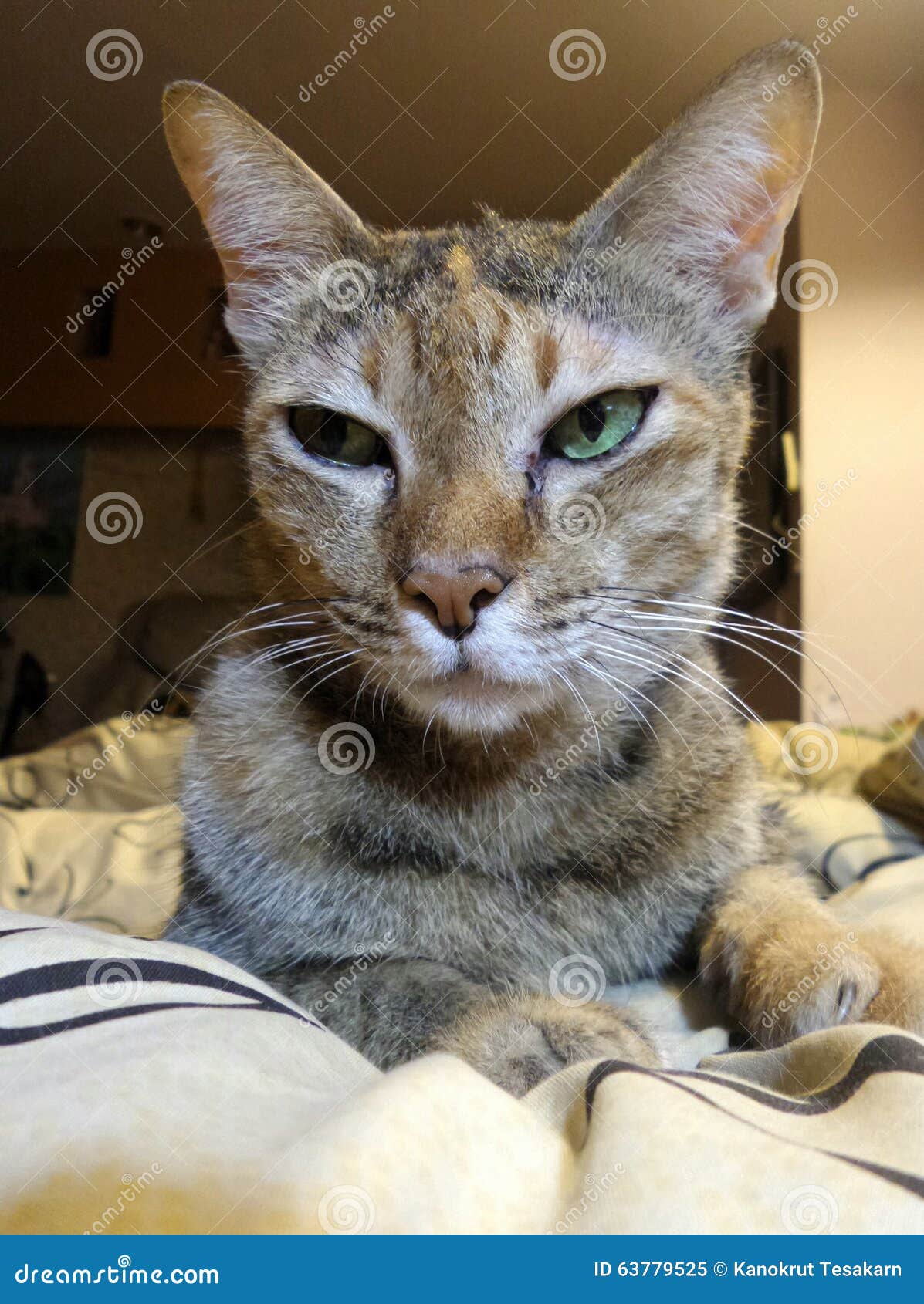 Schlafrige Braune Katze Mit Grunen Augen Stockbild Bild Von