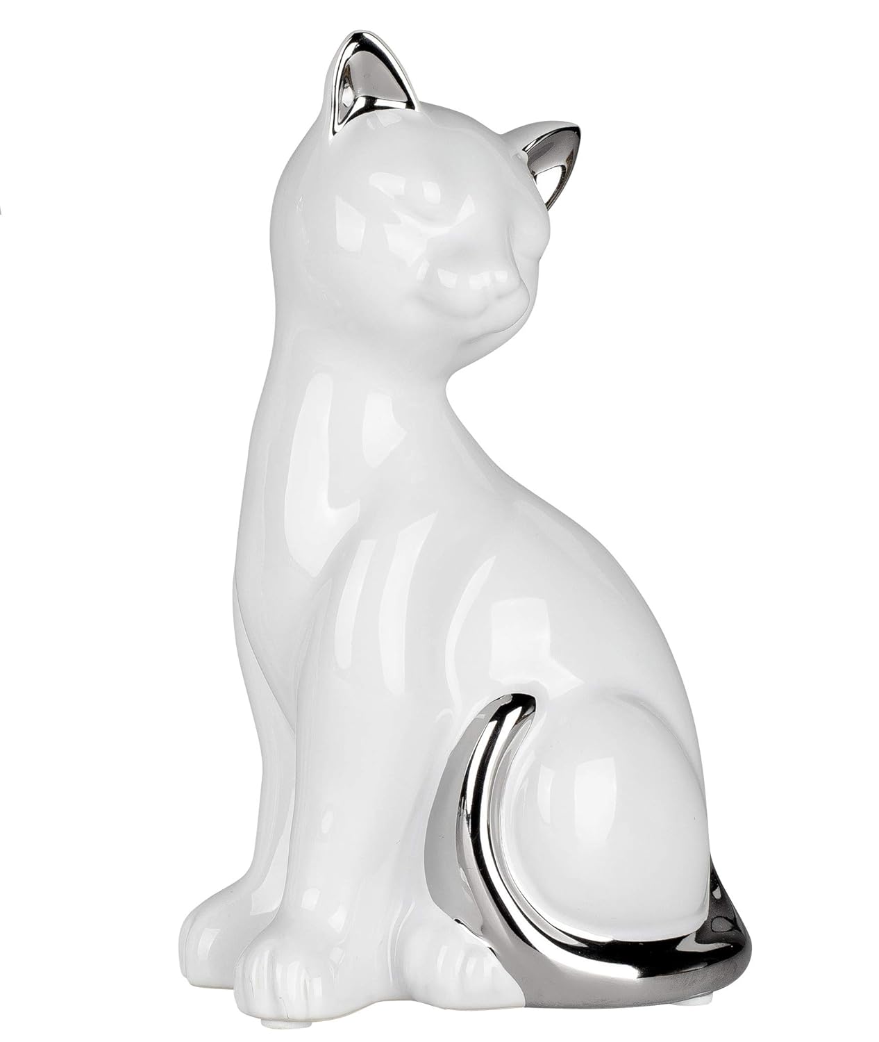 Dekofigur Katze Sitzend Aus Keramik H 36 White Weiss Glanzend