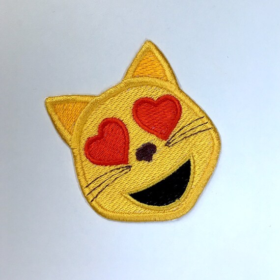 Lachelnde Katze Gesicht Mit Herz Augen Emoji Bestickt Patch Etsy