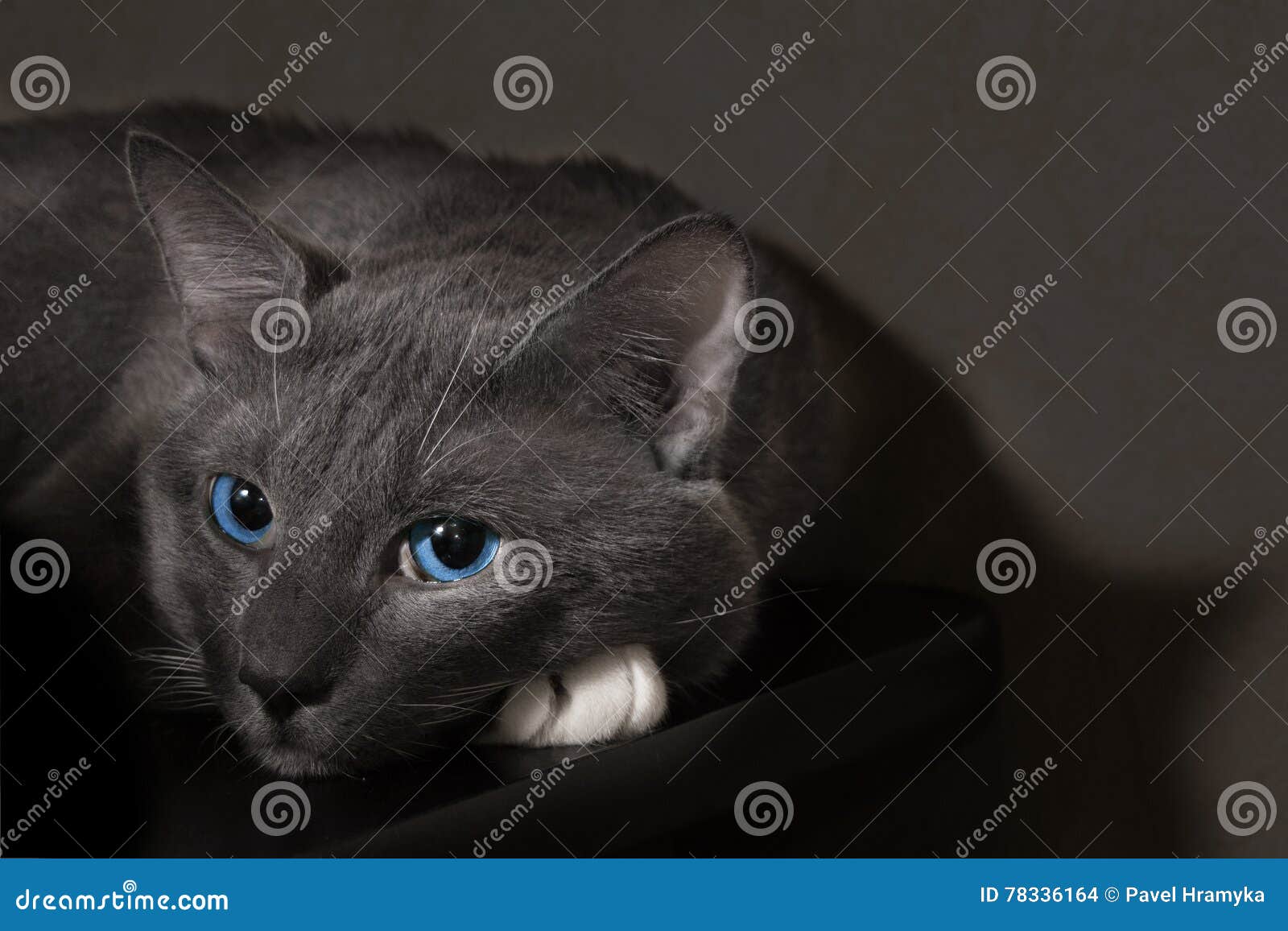 Graue Katze Mit Blauen Augen Reflektiert Stock Bild Colourbox