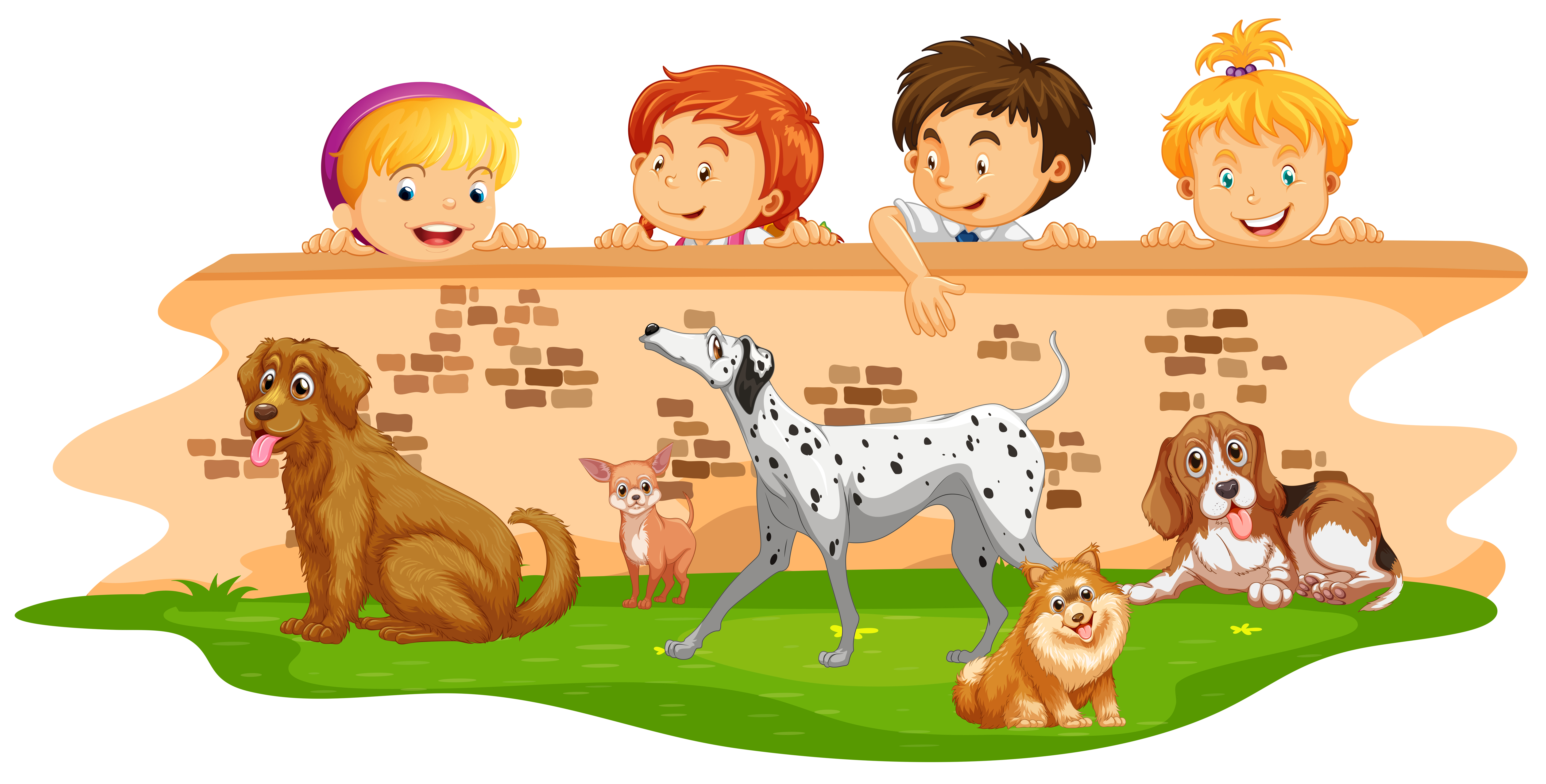 Kinder Die Hunde Uber Der Wand Betrachten Download Kostenlos