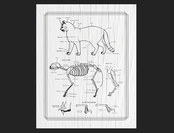 Print Zu Hause Katze Anatomie Schwarz Und Weiss Strukturierte Etsy
