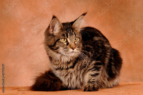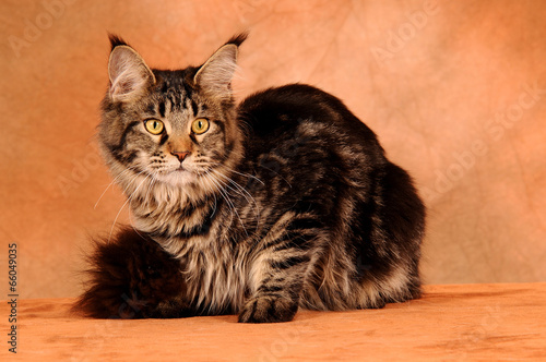 Maine Coon Katze Auf Braun Buy This Stock Photo And Explore