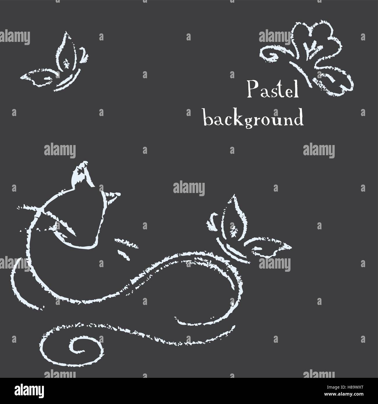 Katze Auf Schwarz Hintergrund Gemalt Pastell Kreide Vektor