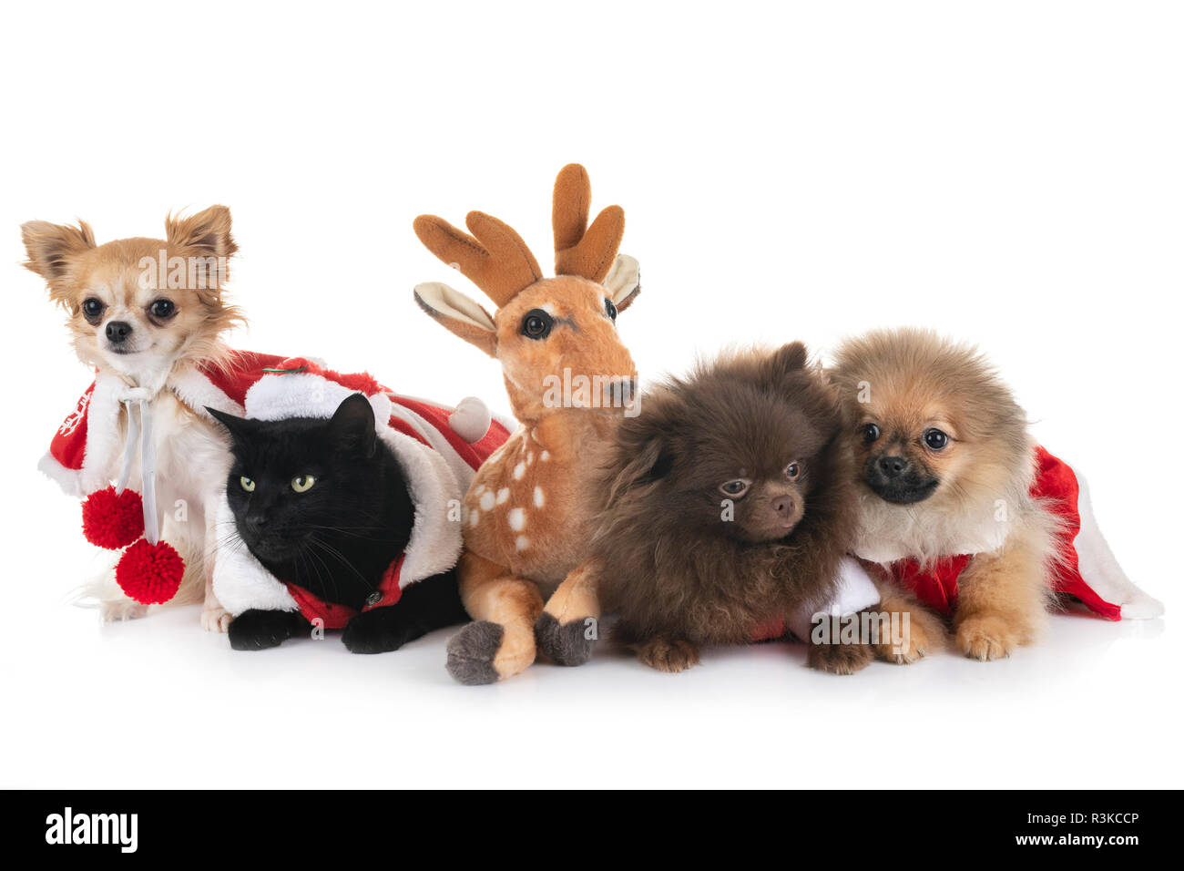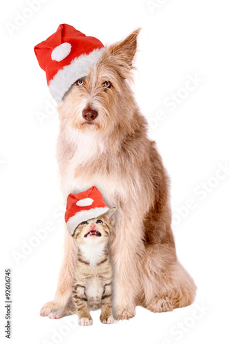 Hund Und Katze Mit Weihnachtsmutze Auf Weissem Hintergrund Kaufen