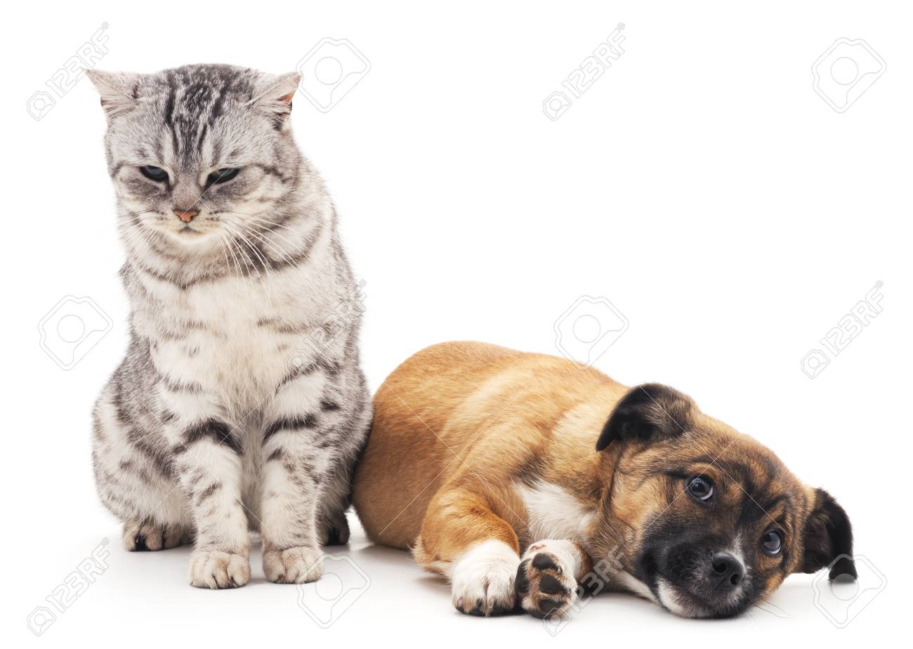 Katze Und Hund Auf Einem Weissen Hintergrund Lizenzfreie Fotos