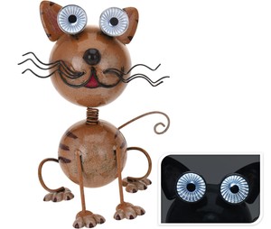 Lustige Bunte Deko Katze Hund Metall Mit Leuchtenden Led Augen
