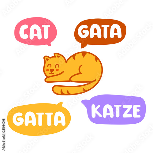 Cat Gata Gatta Katze Translation Concept Hand Drawn Vector