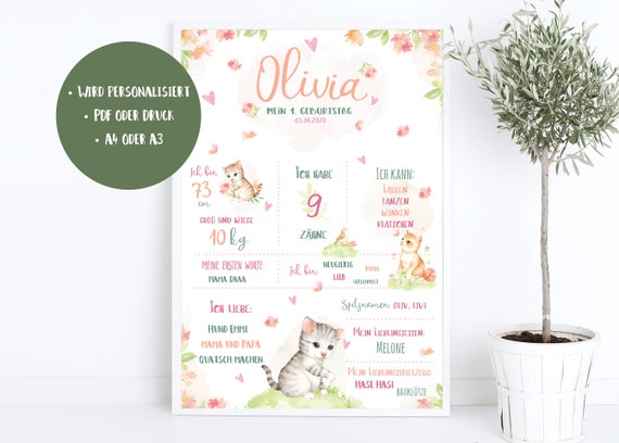 Meilensteintafel 1 Geburtstag Katze Geburtstagstafel Junge Und