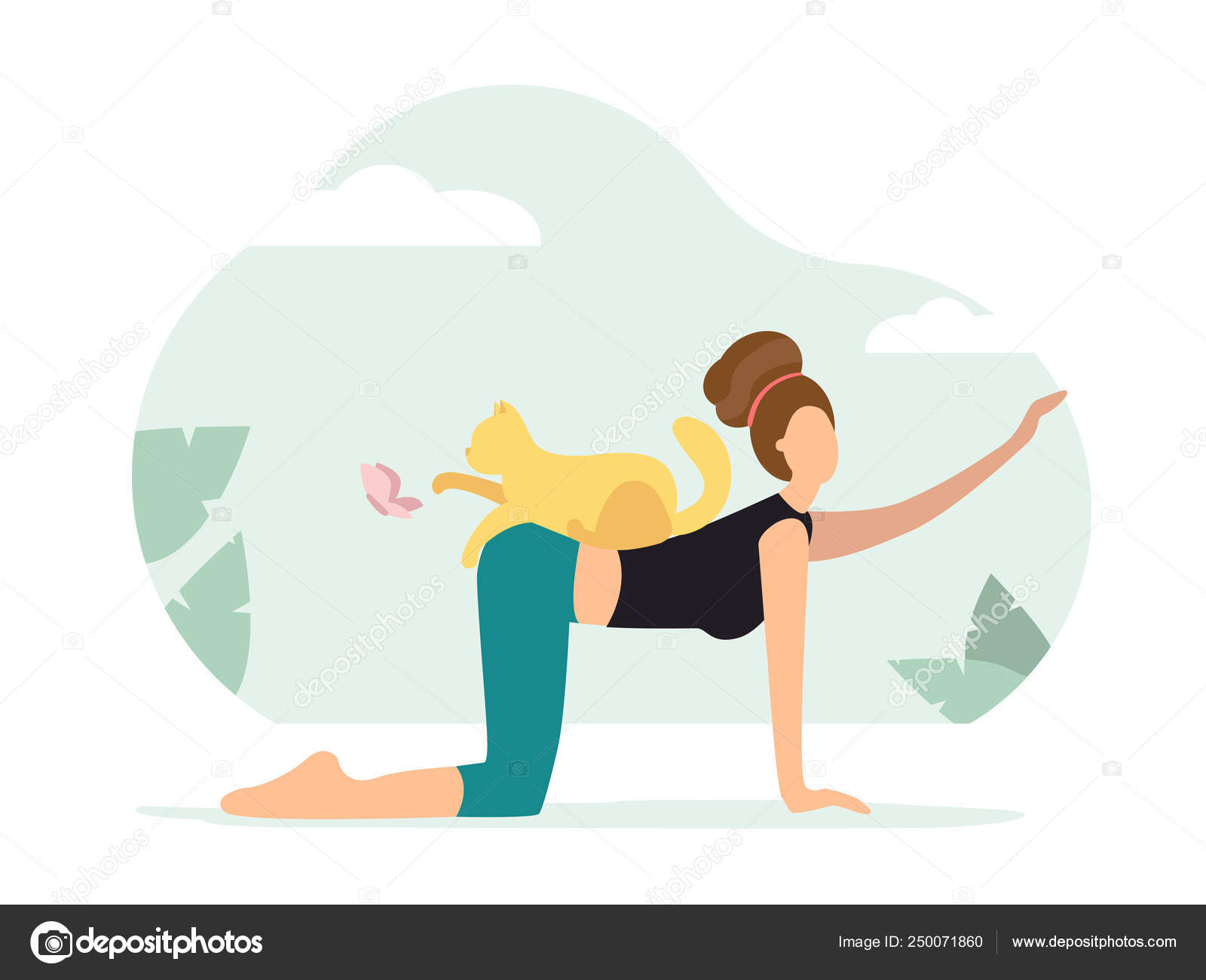 Pflugschse Frau Macht Yoga Mit Katze Stock Vektor Art Und Mehr