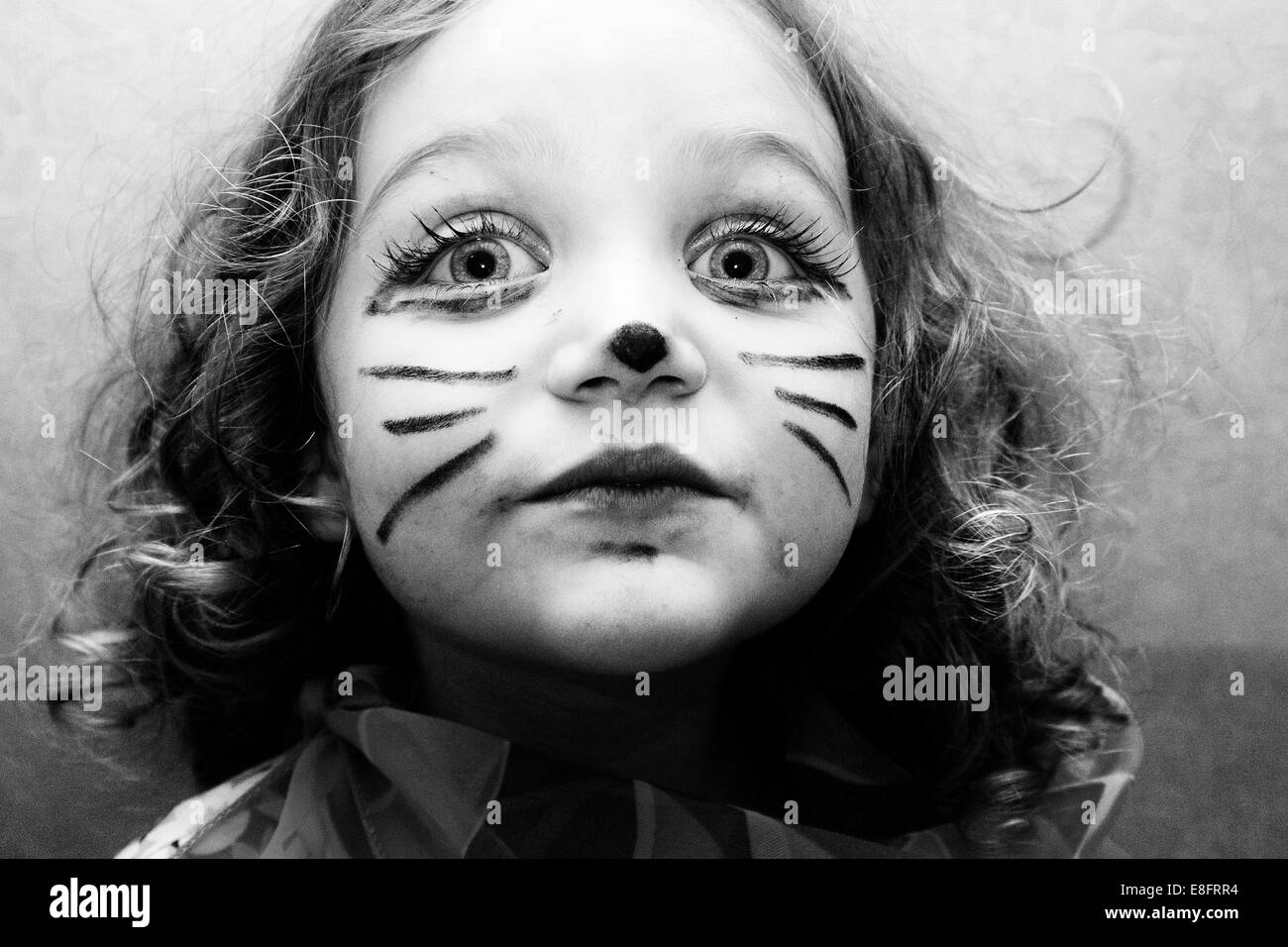 Portrat Eines Madchens 4 5 Mit Katze Gesicht Malen Stockfoto