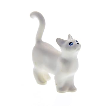 1 X Lego System Tier Katze Weiss Stehend Augen Blau Nase Dunkel