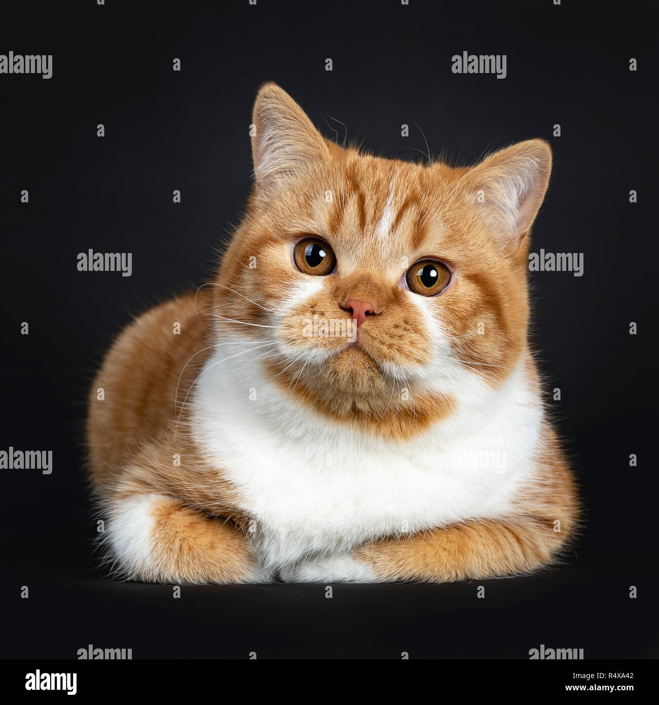 Cute Knabe Rot Gestromt Mit Weiss Britisch Kurzhaar Katze Katzchen