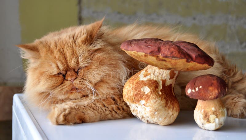 Katze Und Pilz Stockfoto Bild Von Maschine Pelz Hart 42992738