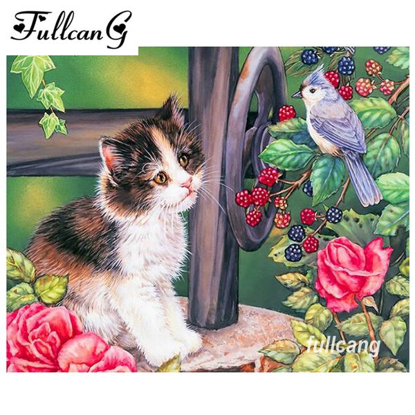 Grosshandel Fullcang Diy 5d Diamant Malerei Kreuzstich Katze Und
