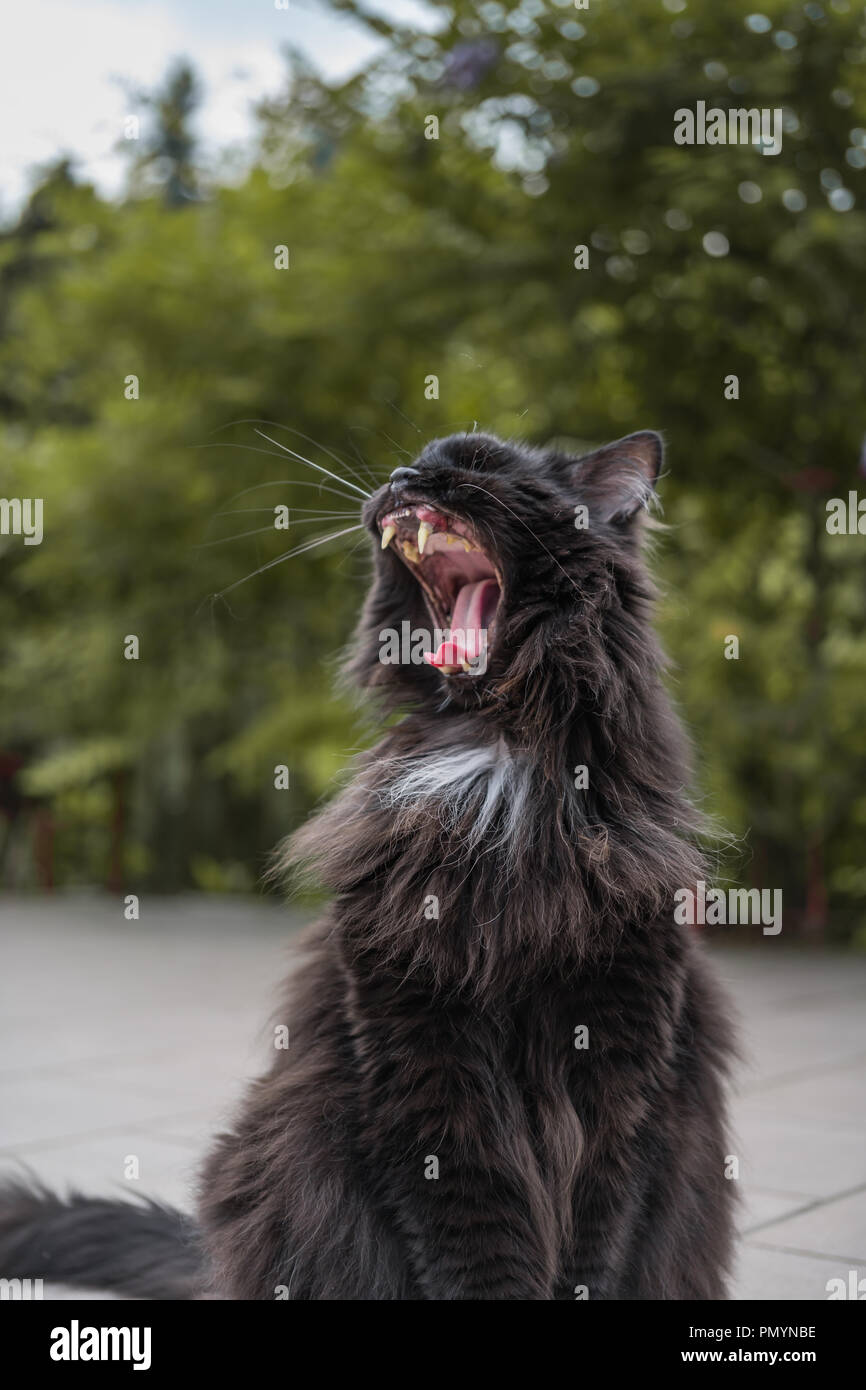 Schwarze Katze Mit Geoffnetem Mund Stockbild Bild Von Katzen