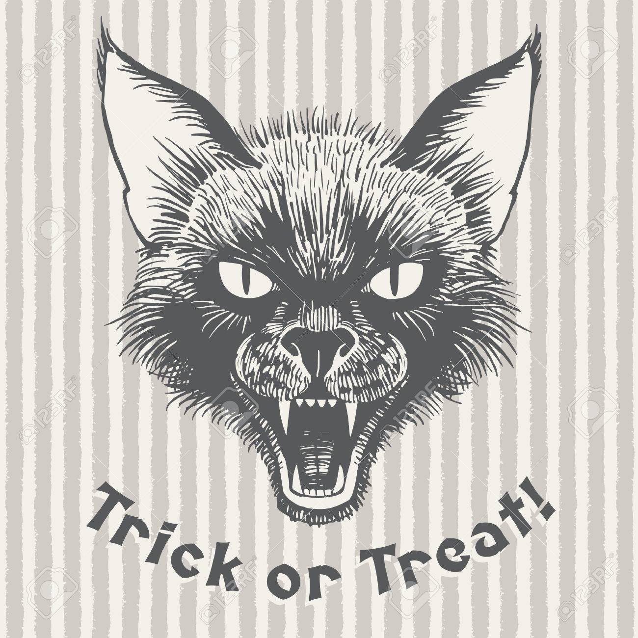 Katzenkopf Illustration Scary Schwarze Katze Mit Offenem Mund Und