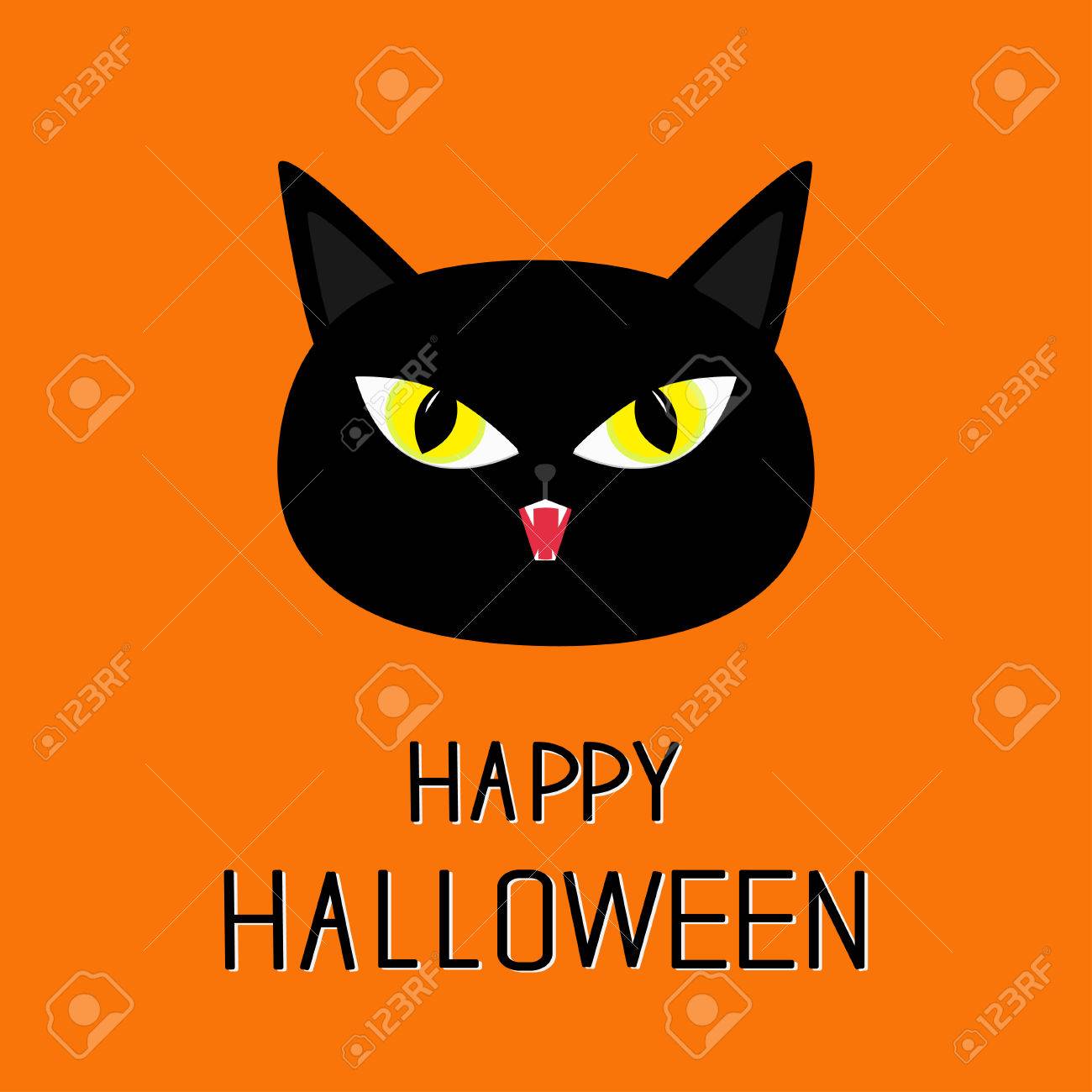Schwarze Katze Kopf Gelbe Augen Zahne Happy Halloween Grusskarte