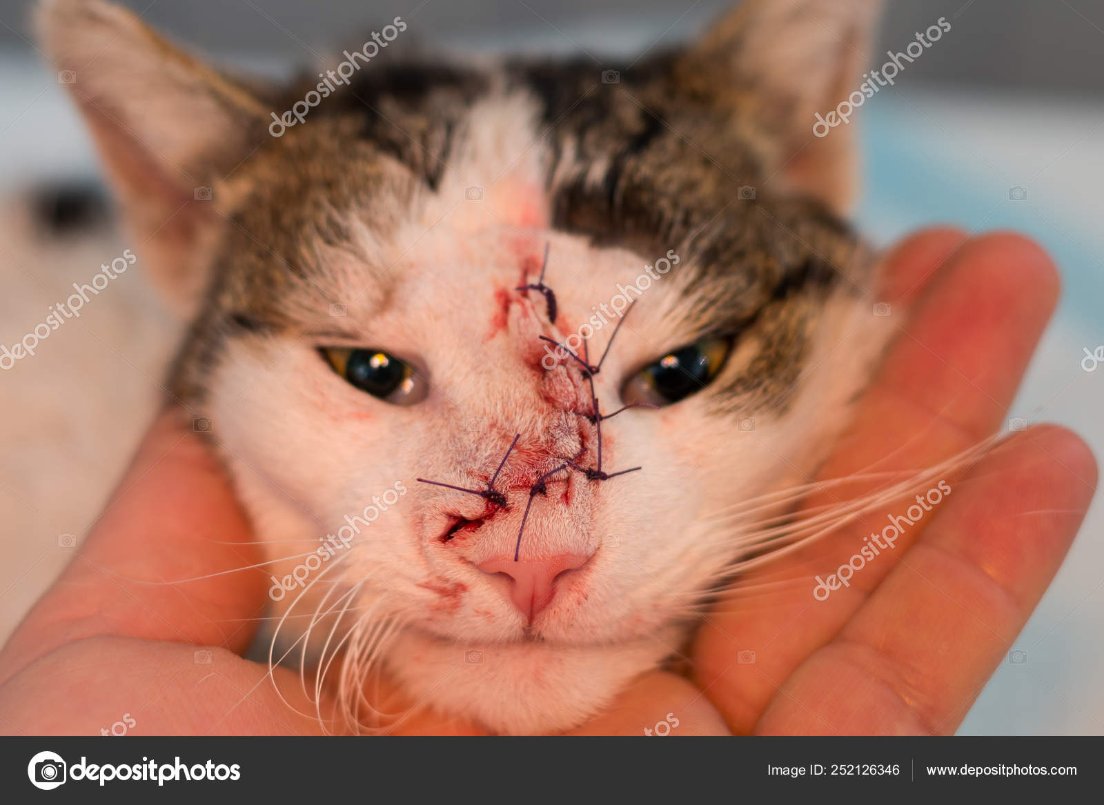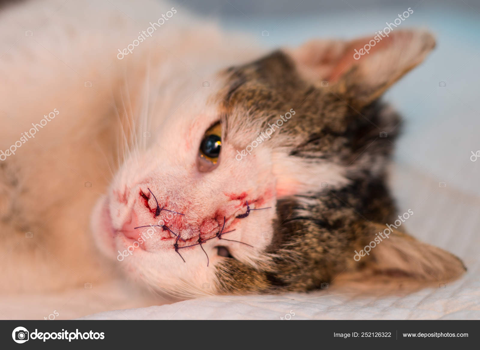 Face Cat Surgery Remove Tumor Suture Separate Points Stock Photo
