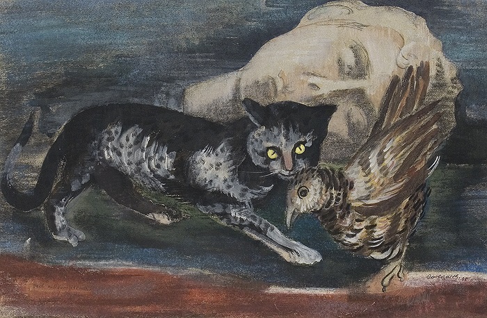 Corneille Bild Femme Chat Et L Oiseau Frau Katze Und Vogel