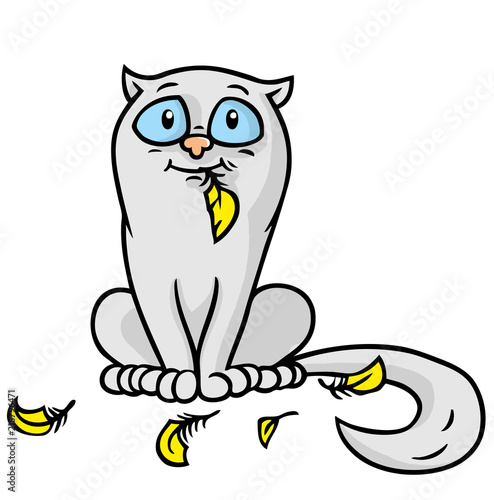 Katze Nach Der Jagd Auf Vogel Mit Federn Im Mund Buy This Stock