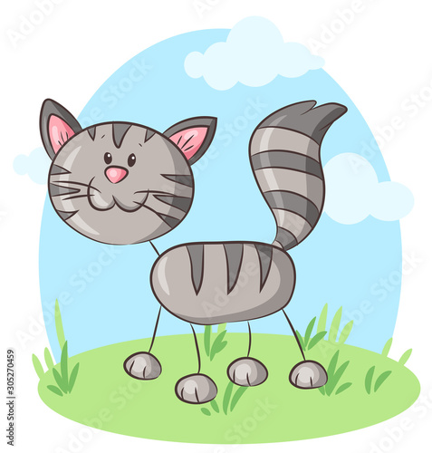 Niedliche Gehende Katze Vektor Illustration Buy This Stock