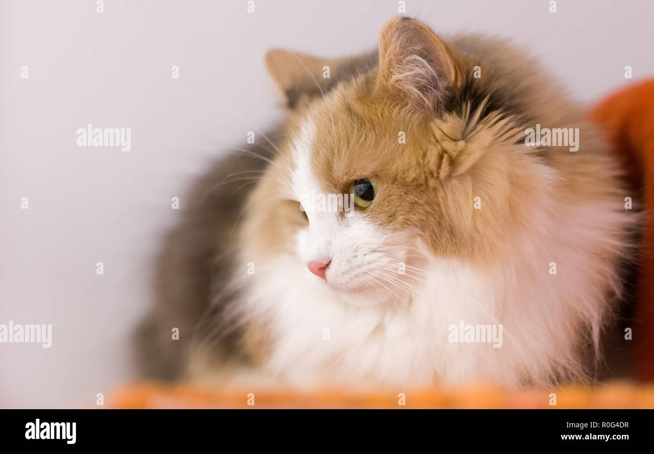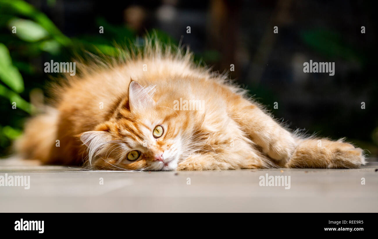 Schone Lange Haare Katze Liegend Und Suchen Auf Der Seite