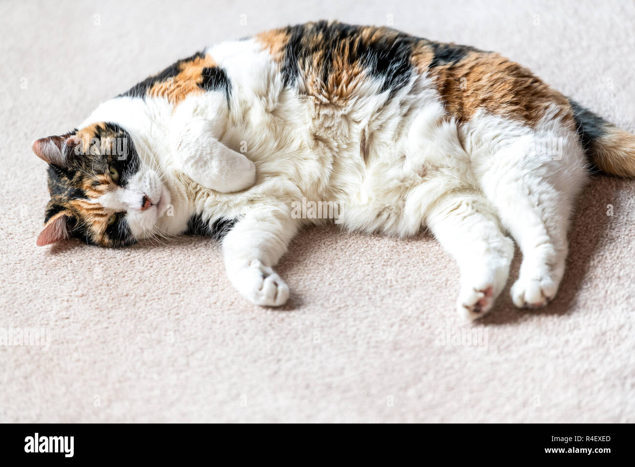Calico Katze Liegend Auf Seite Ich Freue Mich Stockfoto Und Mehr