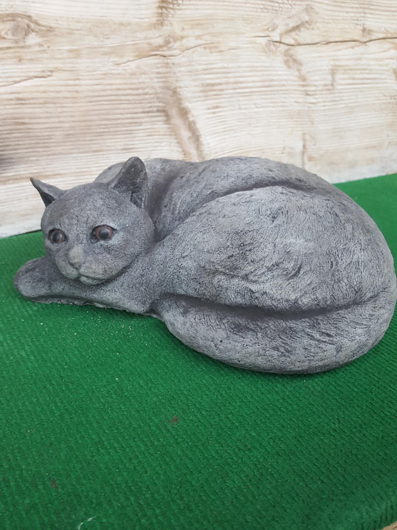 Gartenfiguren Katze Liegend Steinguss Katzen Statue Tierfigur