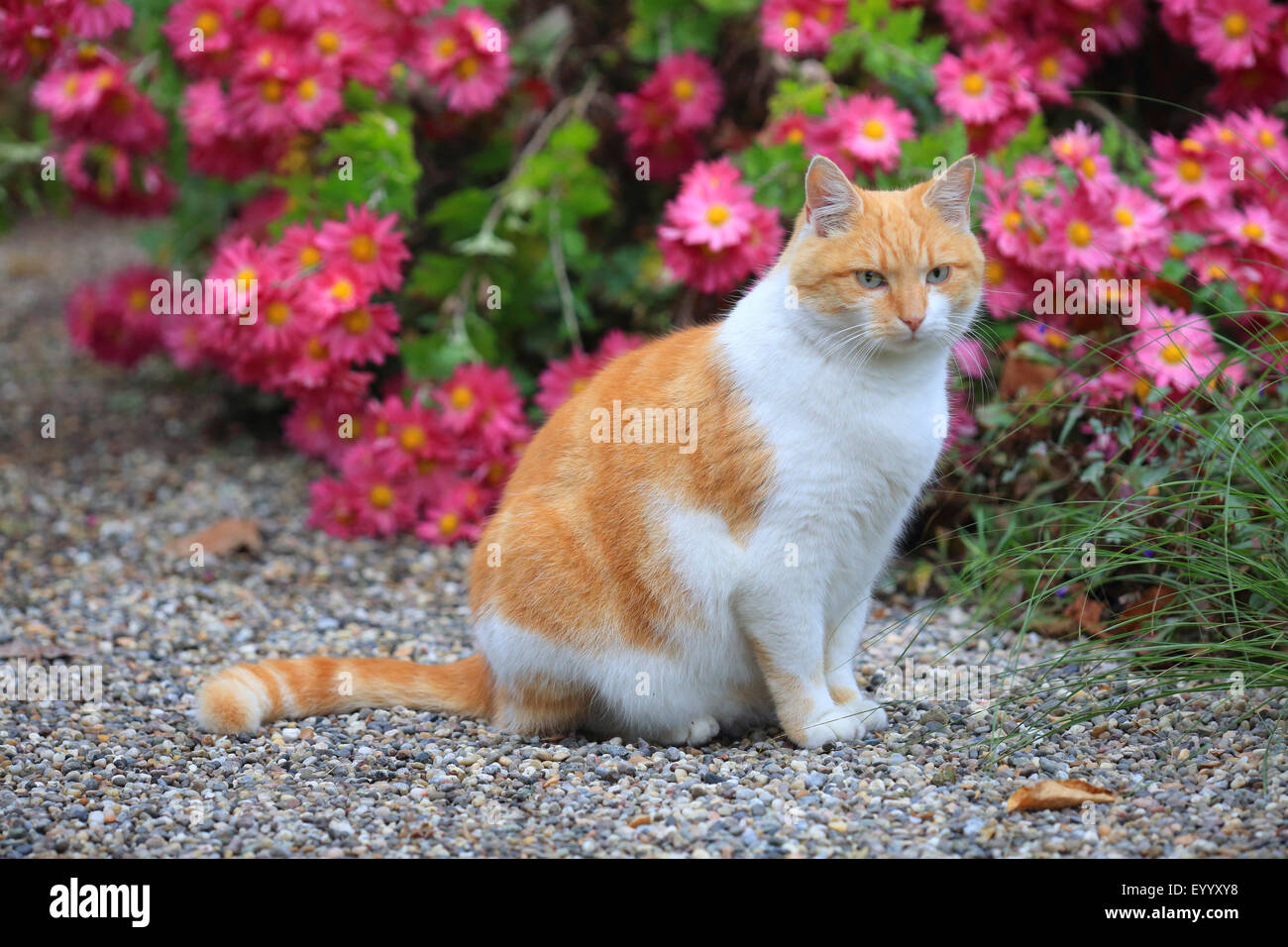 Rot Weiss Fleckig Katze Sitting Auf A Wiese Stock Foto