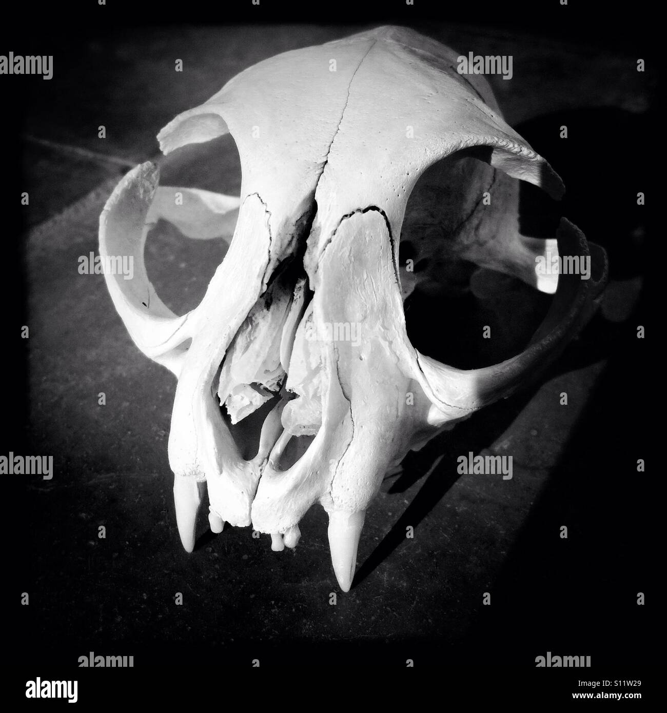 Schwarz Weiss Bild Von Einer Katze Schadel Mit Zahnen Stockfoto