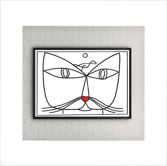 Katze Liebhabergeschenk Katze Zeichnung Minimale Katze Kunst