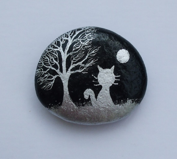 Rock Gemalt Katze Stein Kunst Von Hand Bemalte Kiesel Katze
