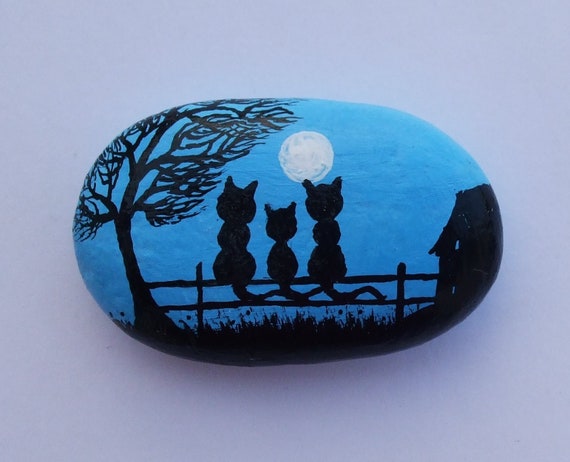 Bemalte Stein Katze Kiesel Rock Magnet Drei Katzen Etsy