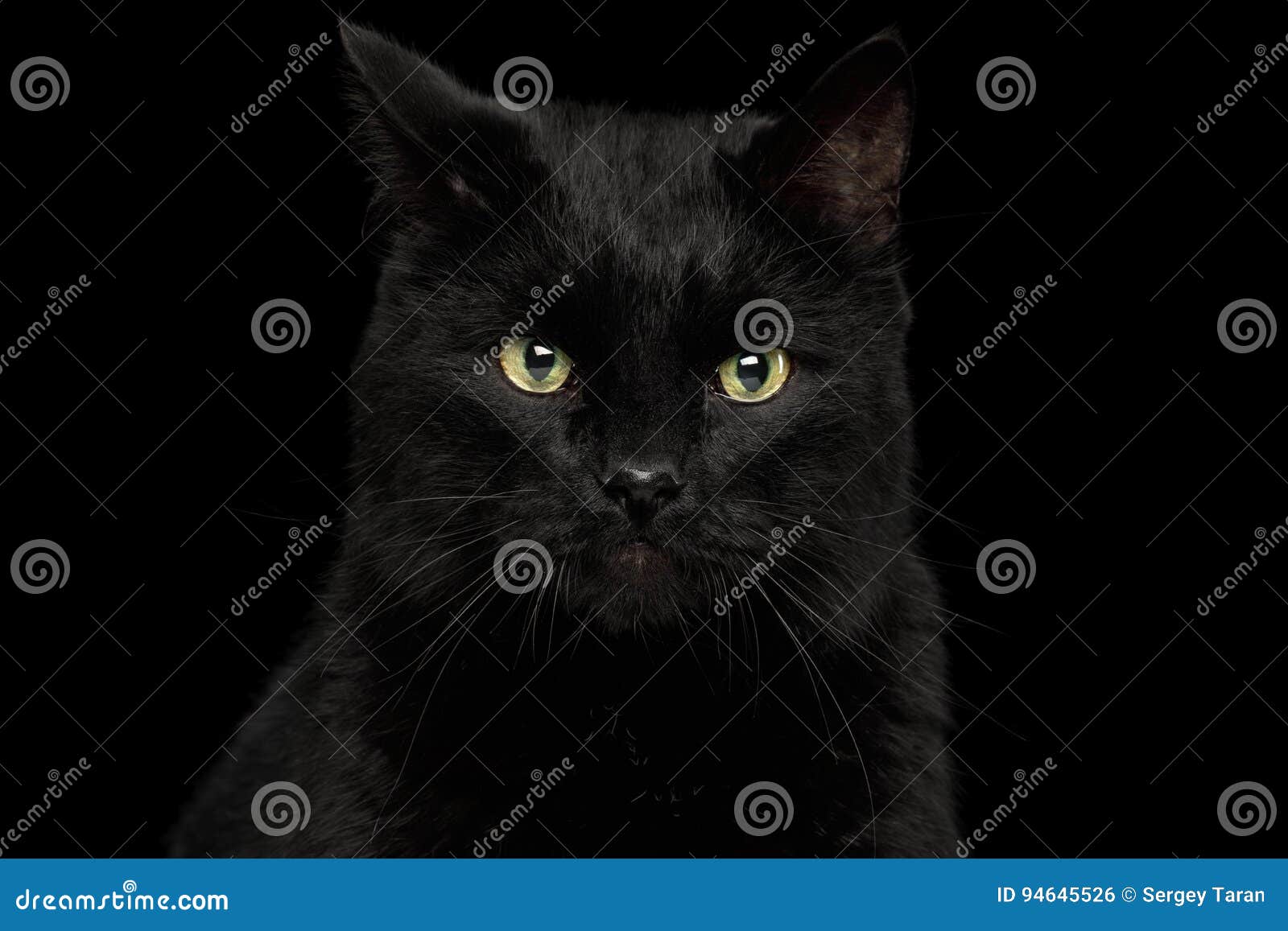 Schwarze Katze Mit Grossen Gelben Augen Auf Weissem Lizenzfreies