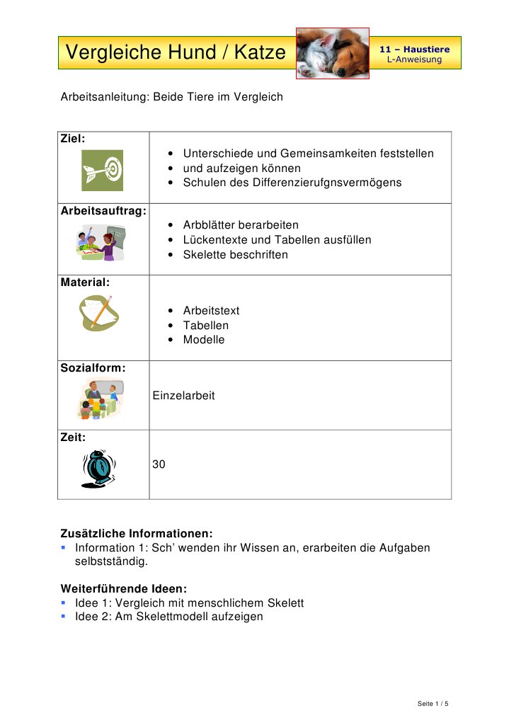 Biologie Arbeitsmaterialien Hund Und Katze 4teachers De