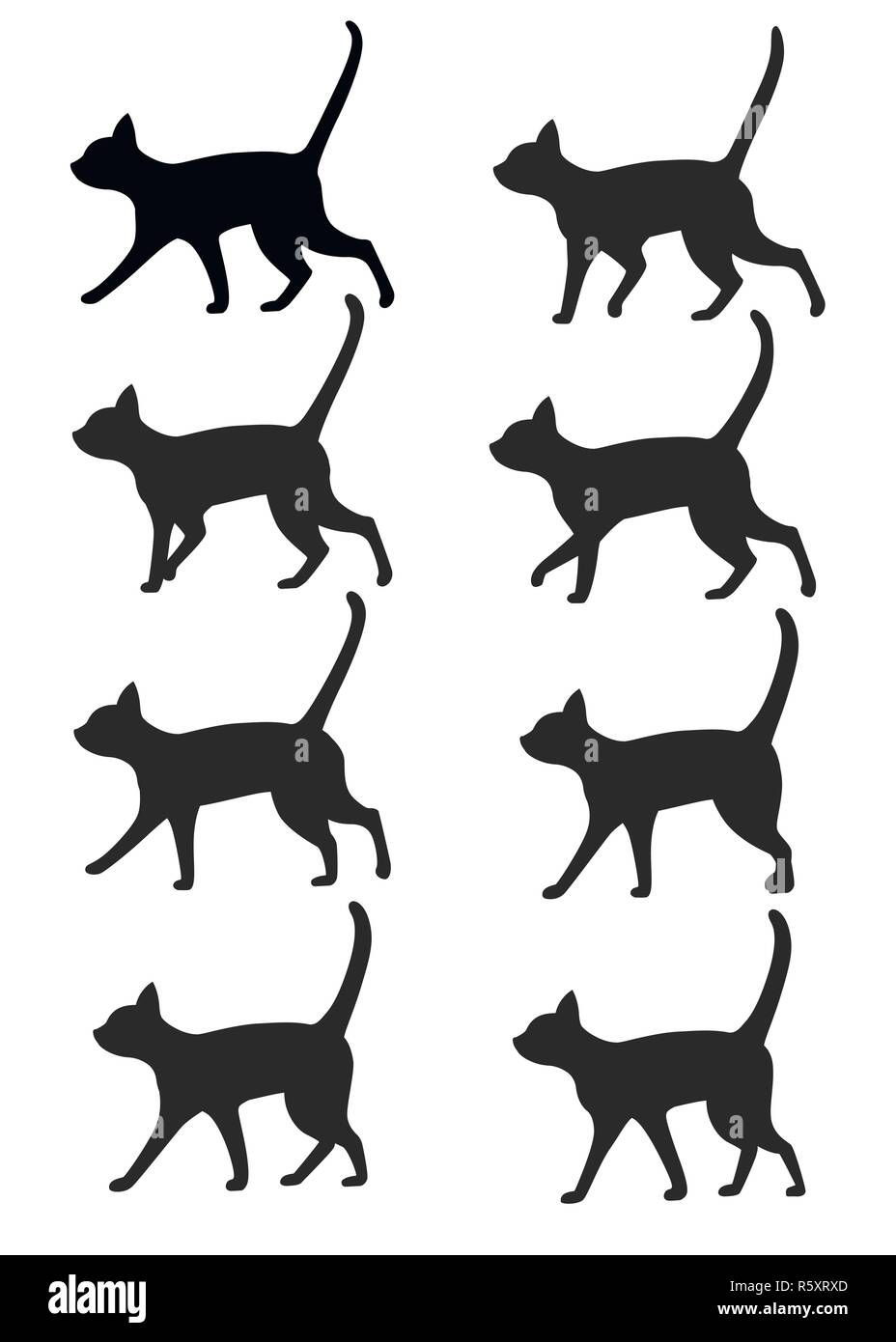 Vector Set Mit Katze Silhouette In Schwarz Isoliert Auf Weissem