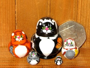 Cats Miniatur Matroschka Russisch Puppen Winzige Schwarz Ingwer